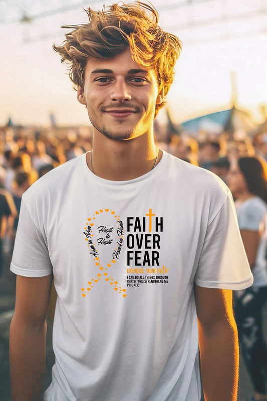 Faith Over Fear Little Hearts Ribbon Kidney Cancer White