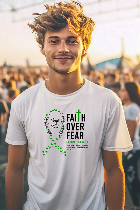 Faith Over Fear Little Hearts Ribbon Liver Cancer White