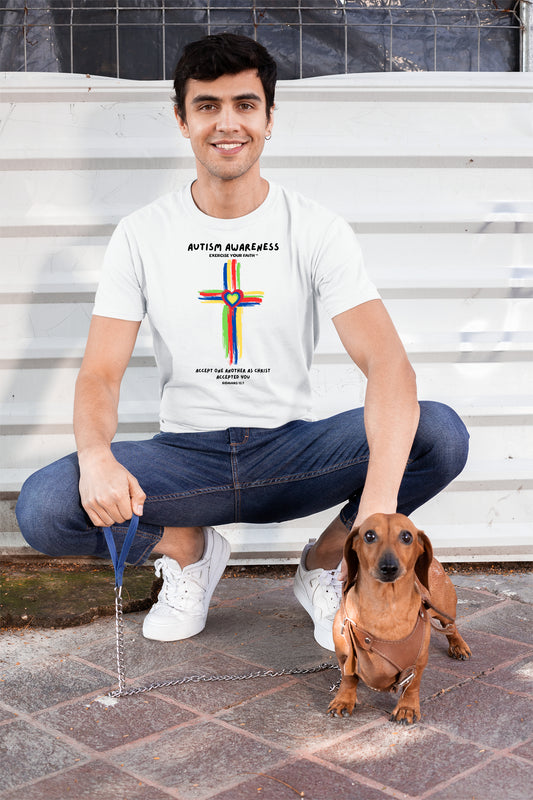 Autism Awareness Accept One Another Cross T-shirt White
