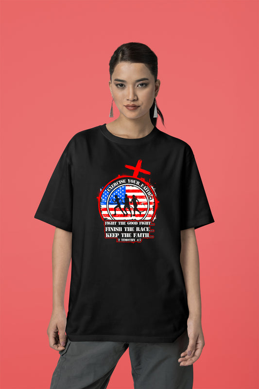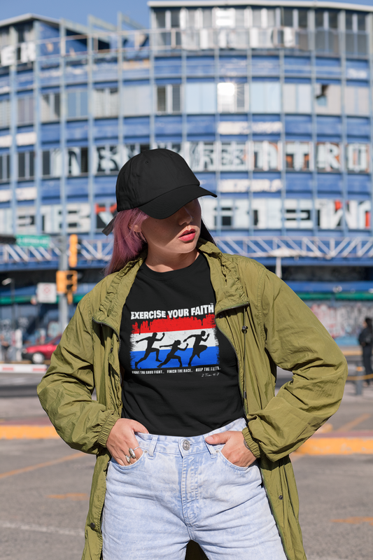 Exercise with purpose, exercise with faith! Our Exercise Your Faith Collection is designed for those who honor God in every step, stretch, and stride. Featuring inspiring Bible verses, faith-driven designs, and comfortable, performance-ready fabric, these shirts remind you that your strength comes from Him. Whether you're lifting, running, or stretching, let your workout be a testimony of faith, perseverance, and dedication. Wear your belief. Train with purpose. Glorify God in every move!