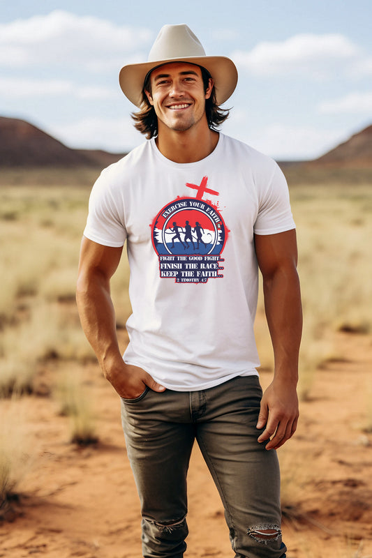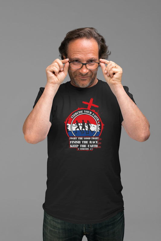 Exercise with purpose, exercise with faith! Our Exercise Your Faith Collection is designed for those who honor God in every step, stretch, and stride. Featuring inspiring Bible verses, faith-driven designs, and comfortable, performance-ready fabric, these shirts remind you that your strength comes from Him. Whether you're lifting, running, or stretching, let your workout be a testimony of faith, perseverance, and dedication. Wear your belief. Train with purpose. Glorify God in every move!