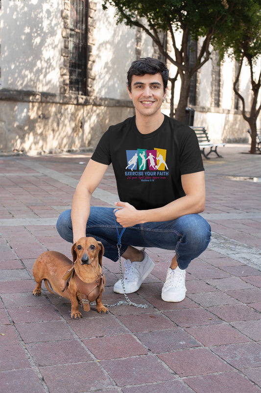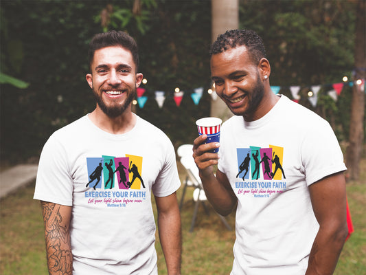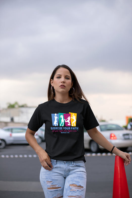 Exercise with purpose, exercise with faith! Our Exercise Your Faith Collection is designed for those who honor God in every step, stretch, and stride. Featuring inspiring Bible verses, faith-driven designs, and comfortable, performance-ready fabric, these shirts remind you that your strength comes from Him. Whether you're lifting, running, or stretching, let your workout be a testimony of faith, perseverance, and dedication. Wear your belief. Train with purpose. Glorify God in every move!