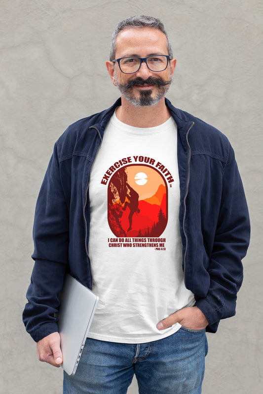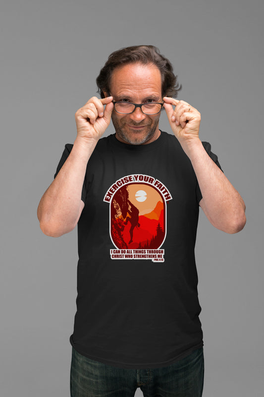 Exercise with purpose, exercise with faith! Our Exercise Your Faith Collection is designed for those who honor God in every step, stretch, and stride. Featuring inspiring Bible verses, faith-driven designs, and comfortable, performance-ready fabric, these shirts remind you that your strength comes from Him. Whether you're lifting, running, or stretching, let your workout be a testimony of faith, perseverance, and dedication. Wear your belief. Train with purpose. Glorify God in every move!
