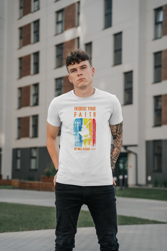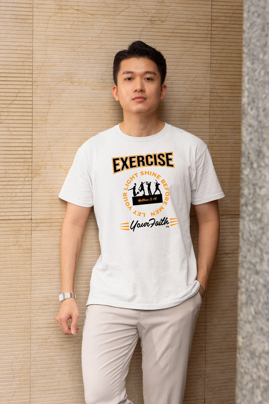 Exercise with purpose, exercise with faith! Our Exercise Your Faith Collection is designed for those who honor God in every step, stretch, and stride. Featuring inspiring Bible verses, faith-driven designs, and comfortable, performance-ready fabric, these shirts remind you that your strength comes from Him. Whether you're lifting, running, or stretching, let your workout be a testimony of faith, perseverance, and dedication. Wear your belief. Train with purpose. Glorify God in every move!