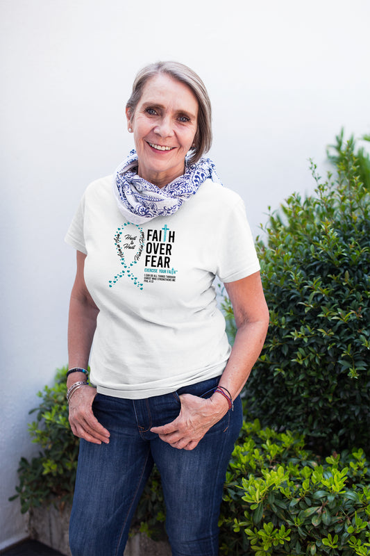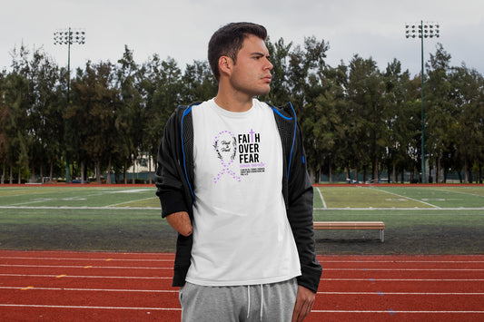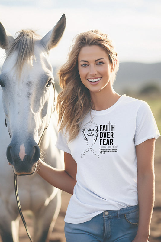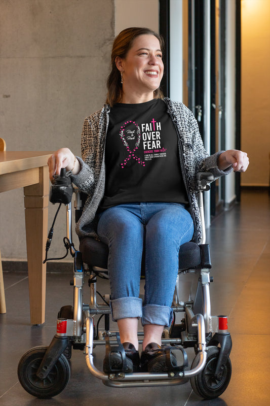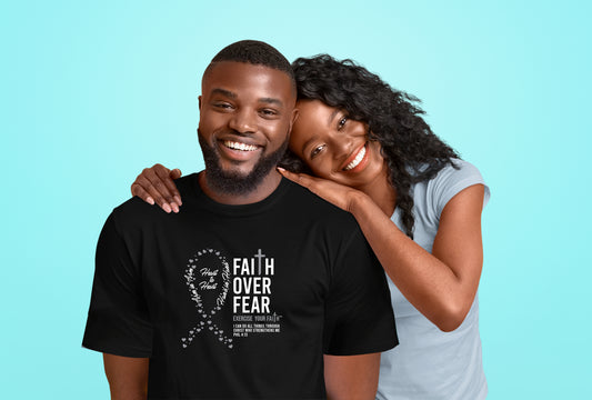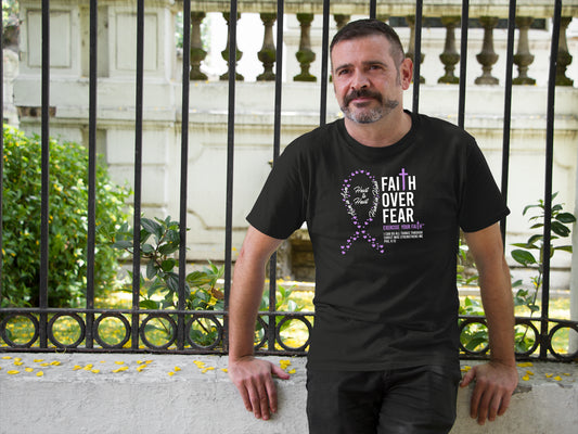 Our Faith Over Fear products are dedicated to spreading faith, hope, and support. Each T-shirt feature designs that combine powerful symbols of faith and uplifting Bible verses. With messages of strength, comfort, and resilience, these shirts are created to encourage those in the fight.