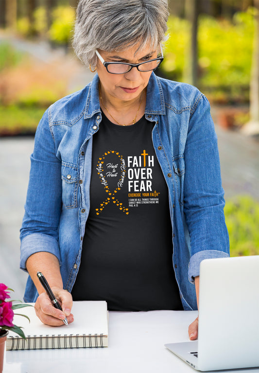 Faith Over Fear Little Hearts Ribbon Kidney Cancer Black