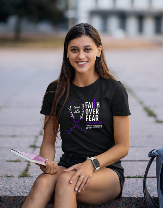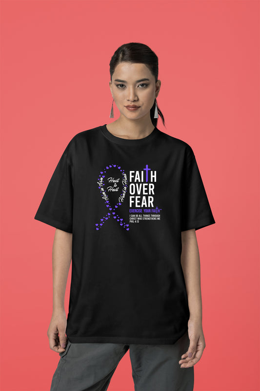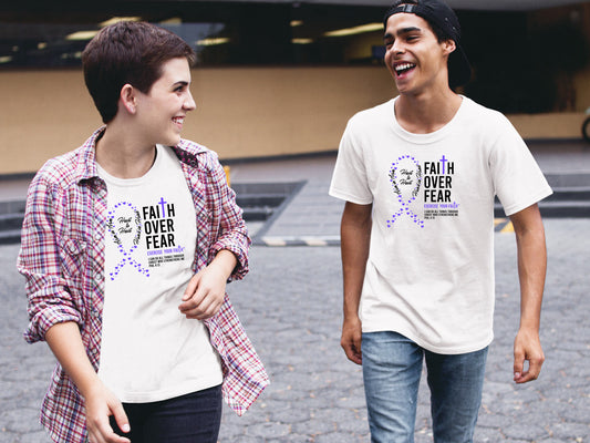 Our Faith Over Fear products are dedicated to spreading faith, hope, and support. Each T-shirt feature designs that combine powerful symbols of faith and uplifting Bible verses. With messages of strength, comfort, and resilience, these shirts are created to encourage those in the fight.