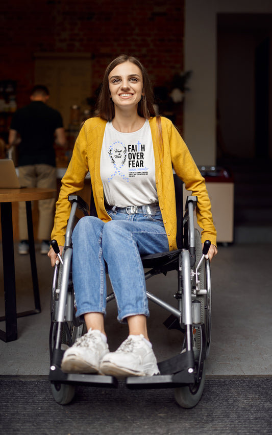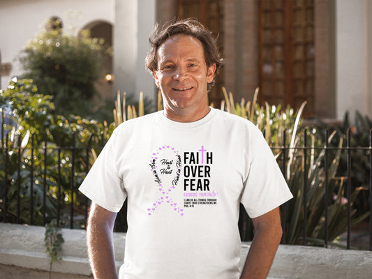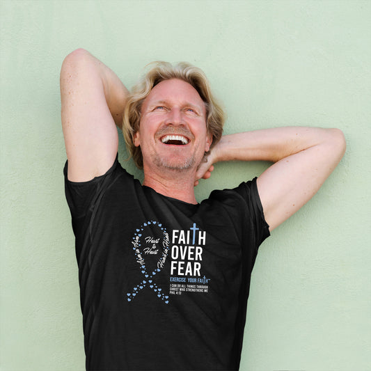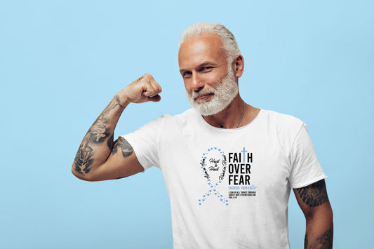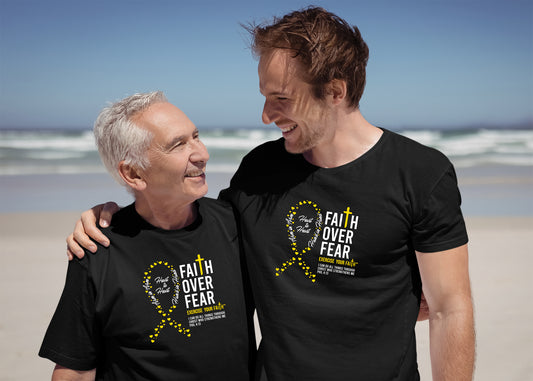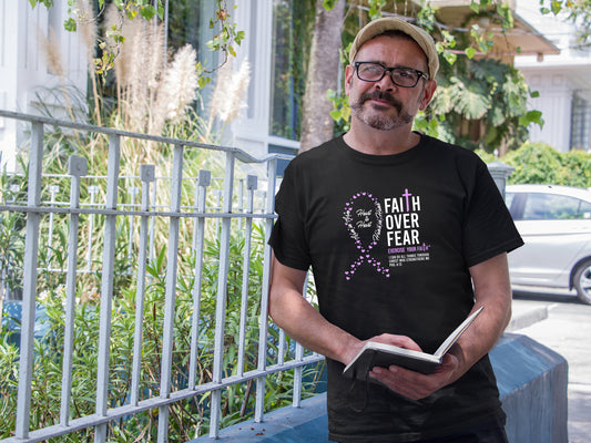 Our Faith Over Fear products are dedicated to spreading faith, hope, and support. Each T-shirt feature designs that combine powerful symbols of faith and uplifting Bible verses. With messages of strength, comfort, and resilience, these shirts are created to encourage those in the fight.