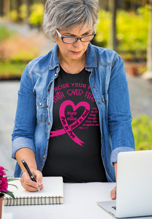 Exercise Your Faith Breast Cancer Ribbon Heart Black