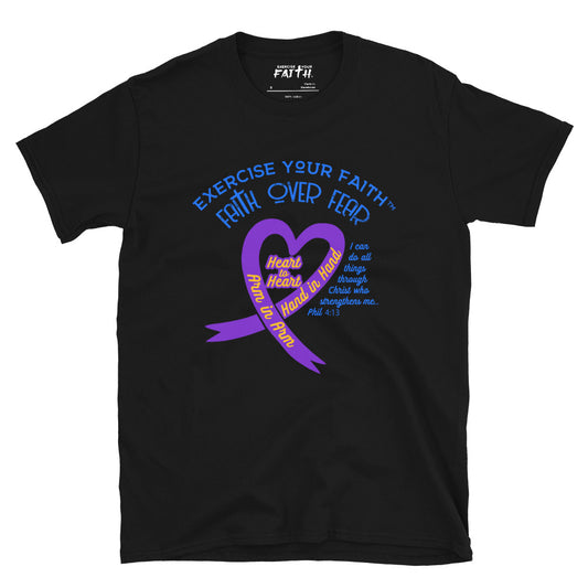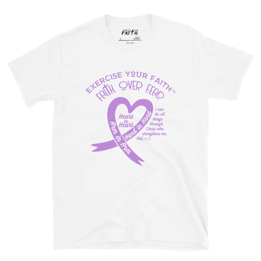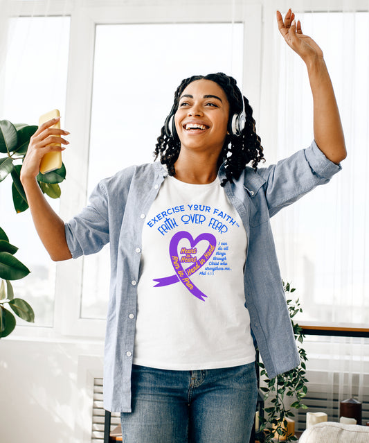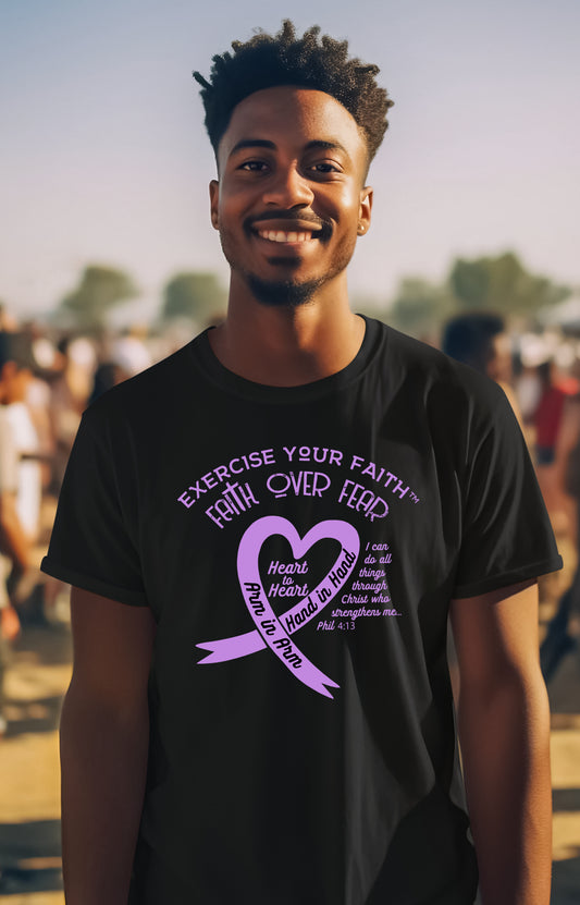 Our Faith Over Fear products are dedicated to spreading faith, hope, and support. Each T-shirt feature designs that combine powerful symbols of faith and uplifting Bible verses. With messages of strength, comfort, and resilience, these shirts are created to encourage those in the fight.