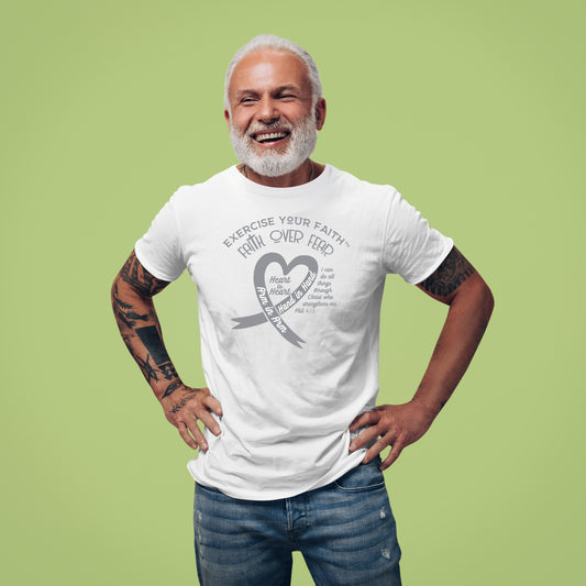 Exercise Your Faith Brain Cancer Ribbon Heart White
