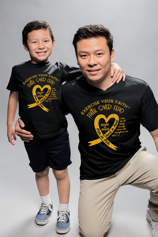 Exercise Your Faith Childhood Cancer Ribbon Heart Black