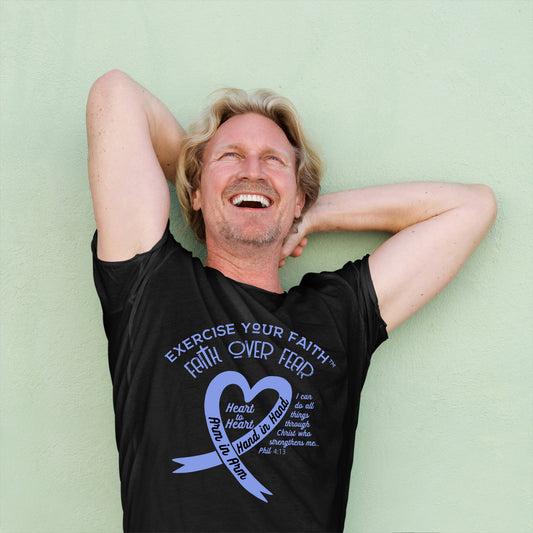 Our Faith Over Fear products are dedicated to spreading faith, hope, and support. Each T-shirt feature designs that combine powerful symbols of faith and uplifting Bible verses. With messages of strength, comfort, and resilience, these shirts are created to encourage those in the fight.