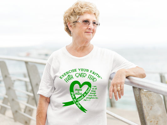 Exercise Your Faith Liver Cancer Ribbon Heart White