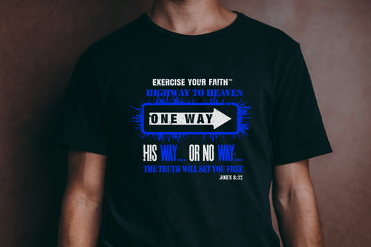 Highway to Heaven - Follow Blue This Way Black T-shirt