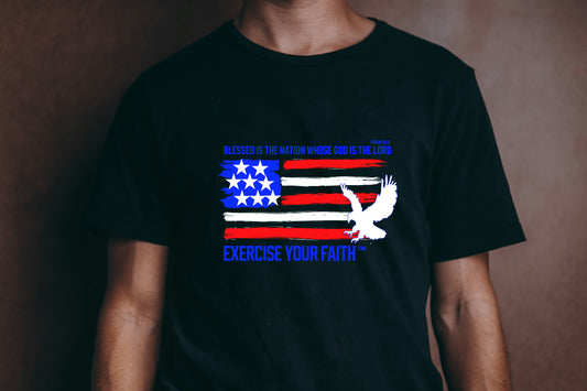 Exercise your Faith Blessed is the nation whose God is the Lord USA T-shirt Black