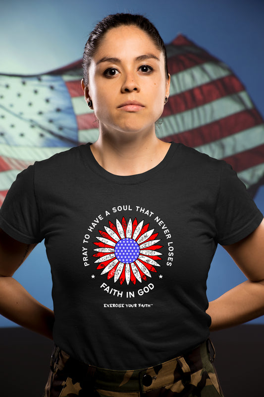 Exercise Your Faith Christian Patriotic Flower T-shirt Black