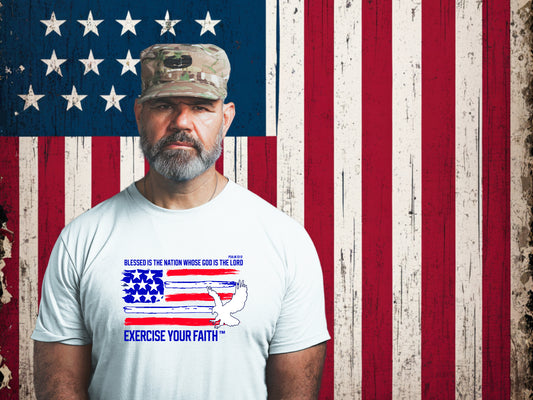 Exercise your Faith Blessed is the nation whose God is the Lord USA T-shirt White