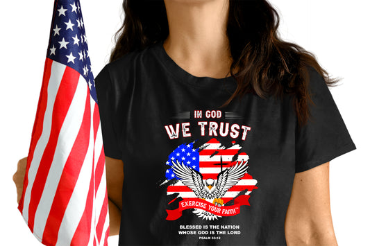 Exercise Your Faith In God we trust American Eagle T-shirt Black