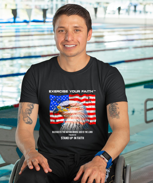 Exercise Your Faith Christian USA Eagle Flag T-shirt Black