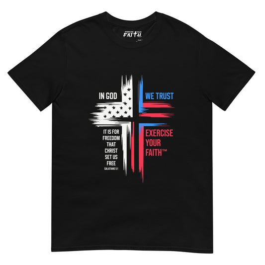 Exercise Your Faith In God We Trust Patriotic Cross T-shirt Black