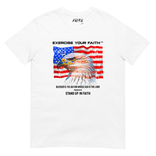 Exercise Your Faith Christian USA Eagle Flag T-shirt White
