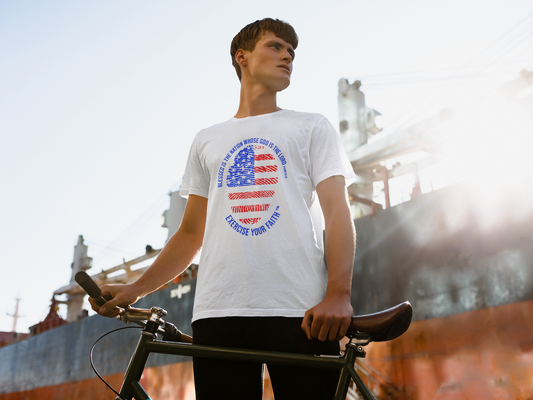 Exercise Your Faith USA Fingerprint Patriotic T-shirt White
