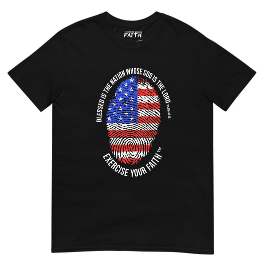 Exercise Your Faith USA Fingerprint Patriotic T-shirt Black