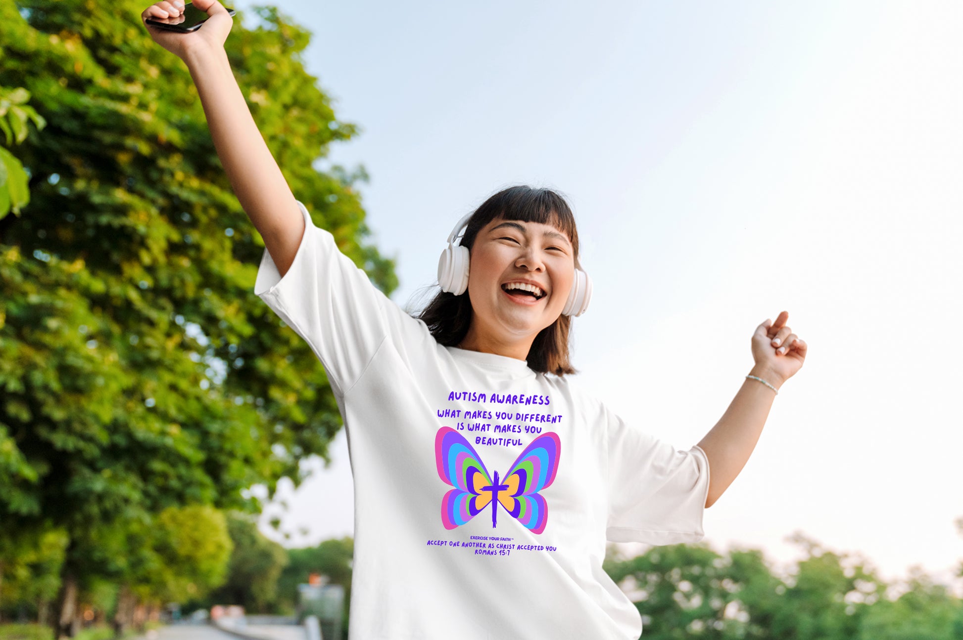 What makes us different is what makes us beautiful. We are all beautiful in the eyes of God. As Christians, we need to embrace all the qualities in each other that make us unique. We are all on this journey of life together. The butterfly represents transformation within this journey and the beauty and importance of accepting our individual differences. Set the example for Autism Awareness by spreading acceptance, kindness, love, understanding, and inclusion.