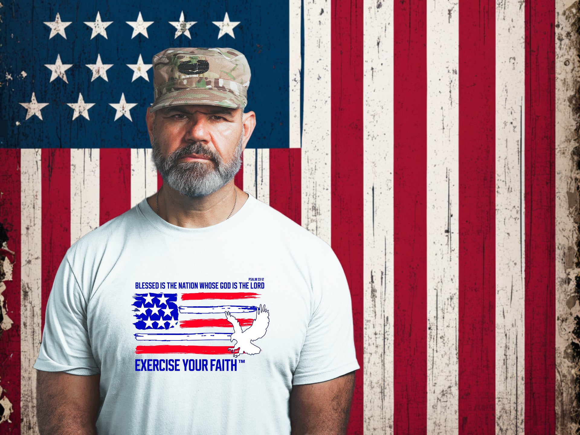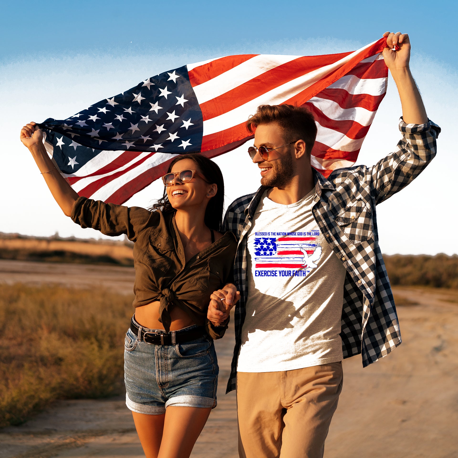 Exercise your Faith Blessed is the nation whose God is the Lord USA T-shirt White