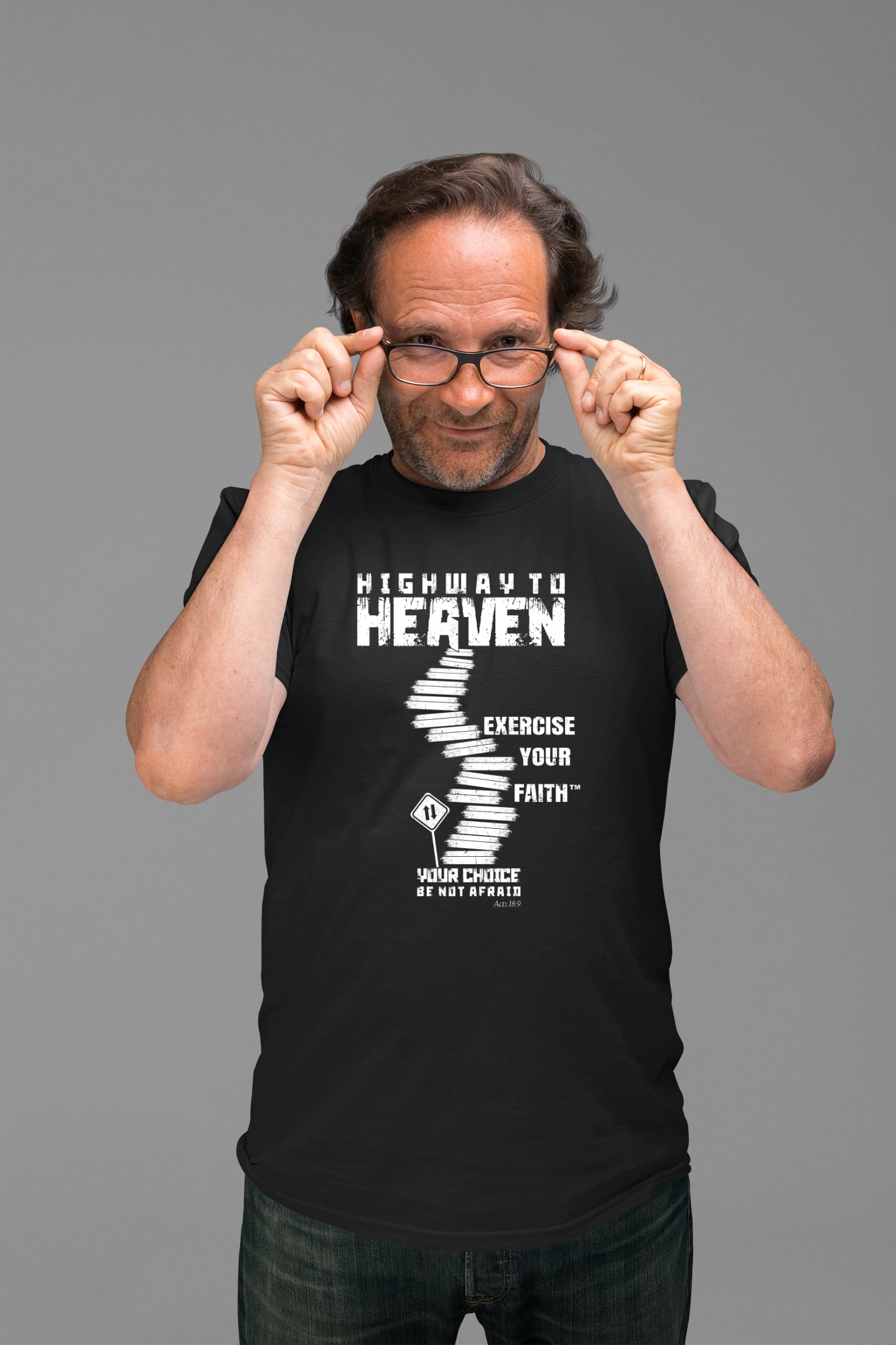 Every day we encounter street signs that direct us and help us reach our destination safely. If we choose not to obey the street signs, then we will suffer the consequences. The same applies to the choices that we make in life. Those decisions will determine where we spend our eternal destiny. This design sends a strong message and will capture the attention of others. Let this T-shirt be a bold statement of faith and your commitment to God’s path. It will open the door to spreading the message of Christ.