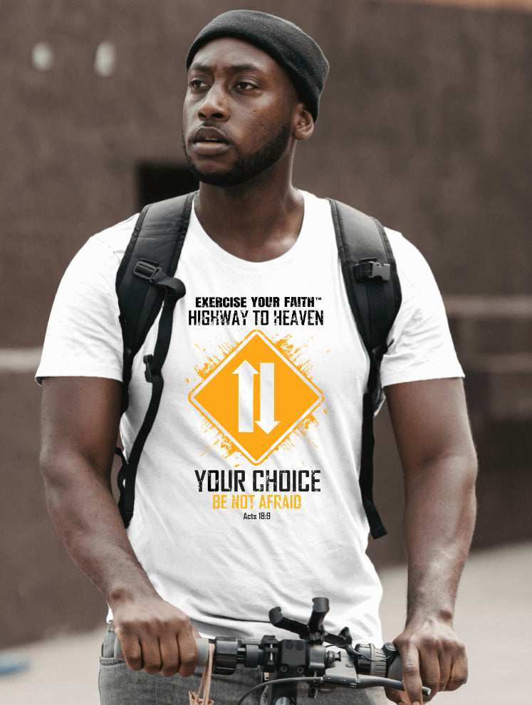 What we wear is a powerful way to express our faith. This bold design sends a strong message that the choices we make in life have eternal consequences. Wear this T-shirt and inspire others to live out their faith boldly and leave a lasting imprint on this earth inspiring others to spread the light of Christ.