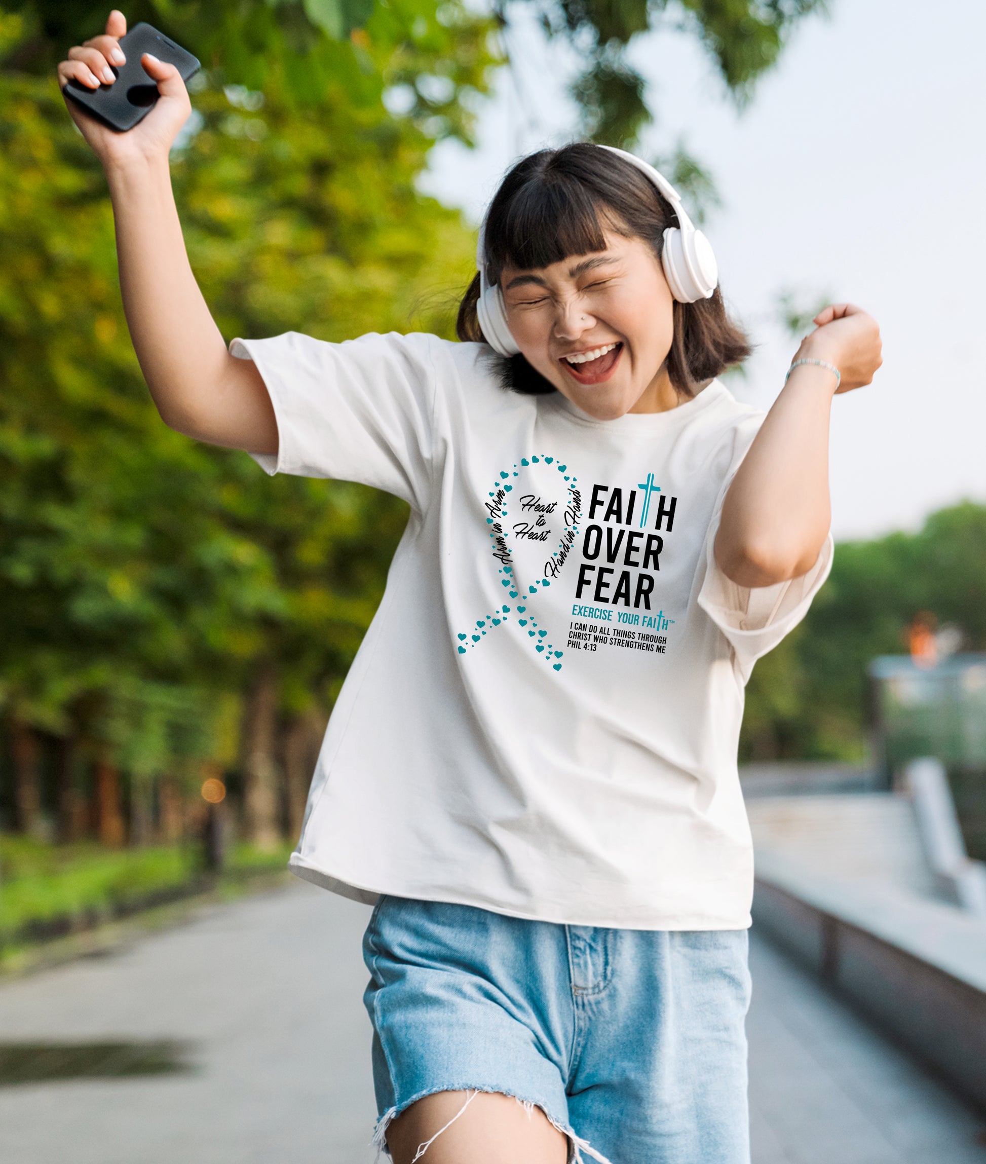 Faith Over Fear Little Hearts Ribbon Cervical Cancer White